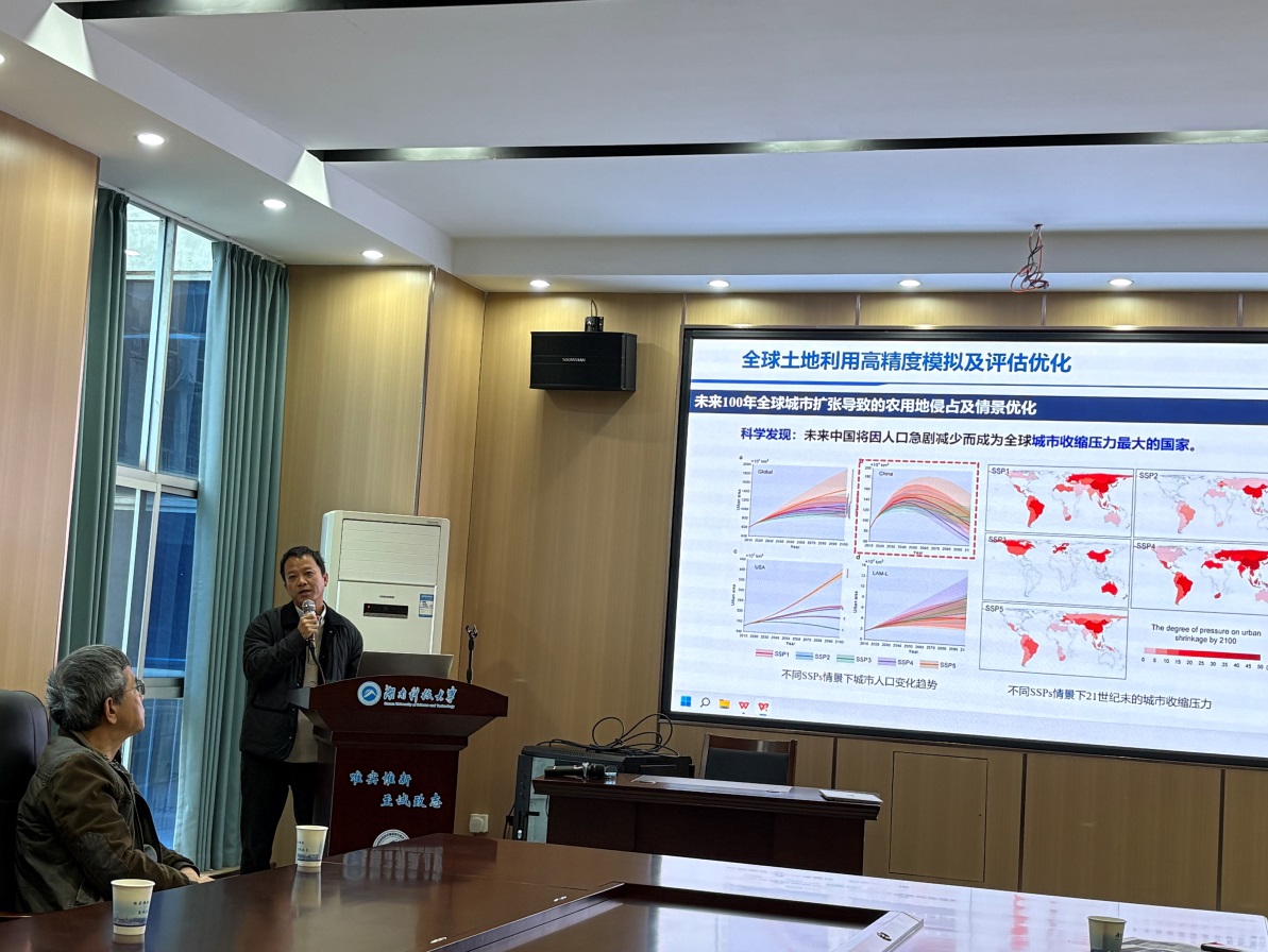 刘小平教授重点介绍了大尺度土地利用高可信度监测方法及高可信土地利用数据的生产流程,系统阐述了高精度样本库、多源遥感数据融合及3D-FLUS和GooDGIS模型在国土空间规划中的应用,并展示了相关成果在湖南省的实践成效。黎夏教授从宏观层面深入解析了土地利用在陆面过程模型中的关键作用,围绕洪水暴露、主体功能区划分及气候变化背景下的空间优化问题,强调模型应用中需充分考虑国家战略与政策导向。