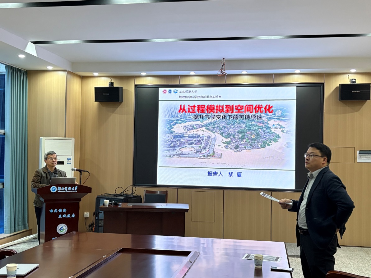2025年12月16日下午,国家杰出青年基金获得者、中山大学刘小平教授,教育部长江学者、国家杰出青年基金获得者、华东师范大学黎夏教授应地理空间信息技术国家地方联合工程实验室邀请,做客湖南科技大学“湘江高端学术论坛”,分别作题为《大尺度土地利用高可信监测、模拟优化的理论与方法及其应用》和《从过程模拟到空间优化——提升气候变化下的可持续性》的学术报告。报告会由实验室副主任唐志光教授主持,相关学院师生代表到场聆听。
